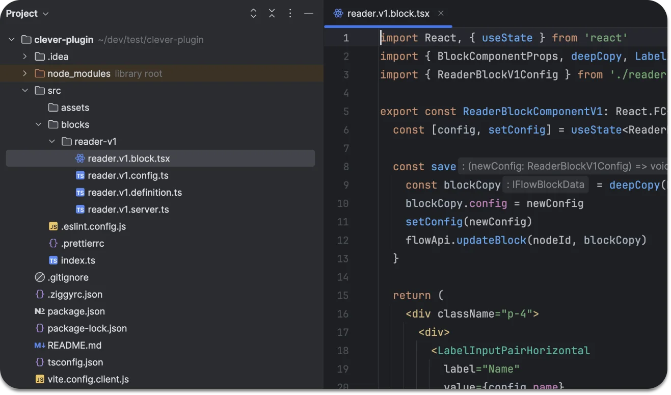 Customize Ziggy by creating plugin blocks. You control both the UI and the run-time with simple TypeScript code.