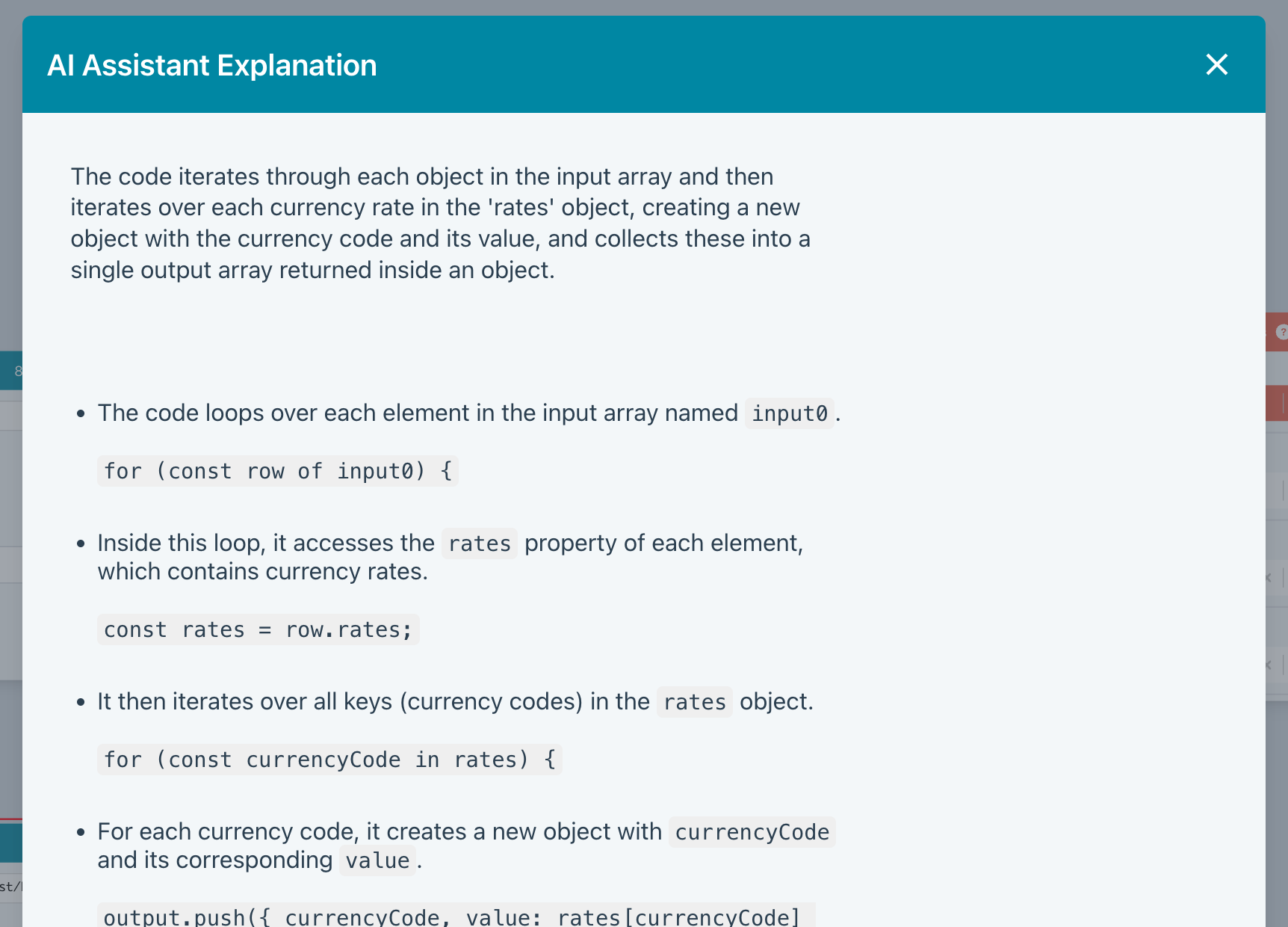 This is a "do anything" block. You don't need to be a developer to use the Javascript block. It's fully AI supported letting you generate code and explain it, too.